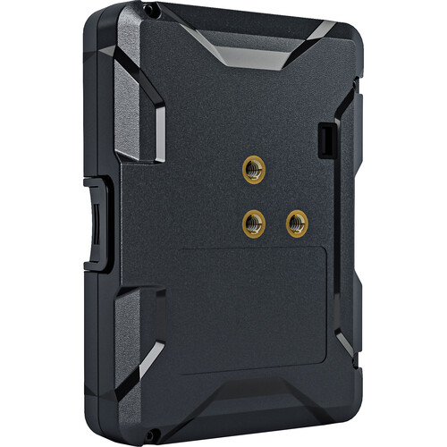 An LCD screen displays the remaining battery time down to the minute and features power three P-Tap outputs, each with charging input capability, and one fast-charge 5V, 2A USB Type-A output. The Titon Base can provide up to 8A of current on a continuous draw using its 68Wh capacity. It can be charged using the Anton Bauer P-Tap charger with one of the P-Tap ports. It also includes an integrated quick release plate with a 1/4″-20 mounting screw so it can be quickly mounted onto your rig.