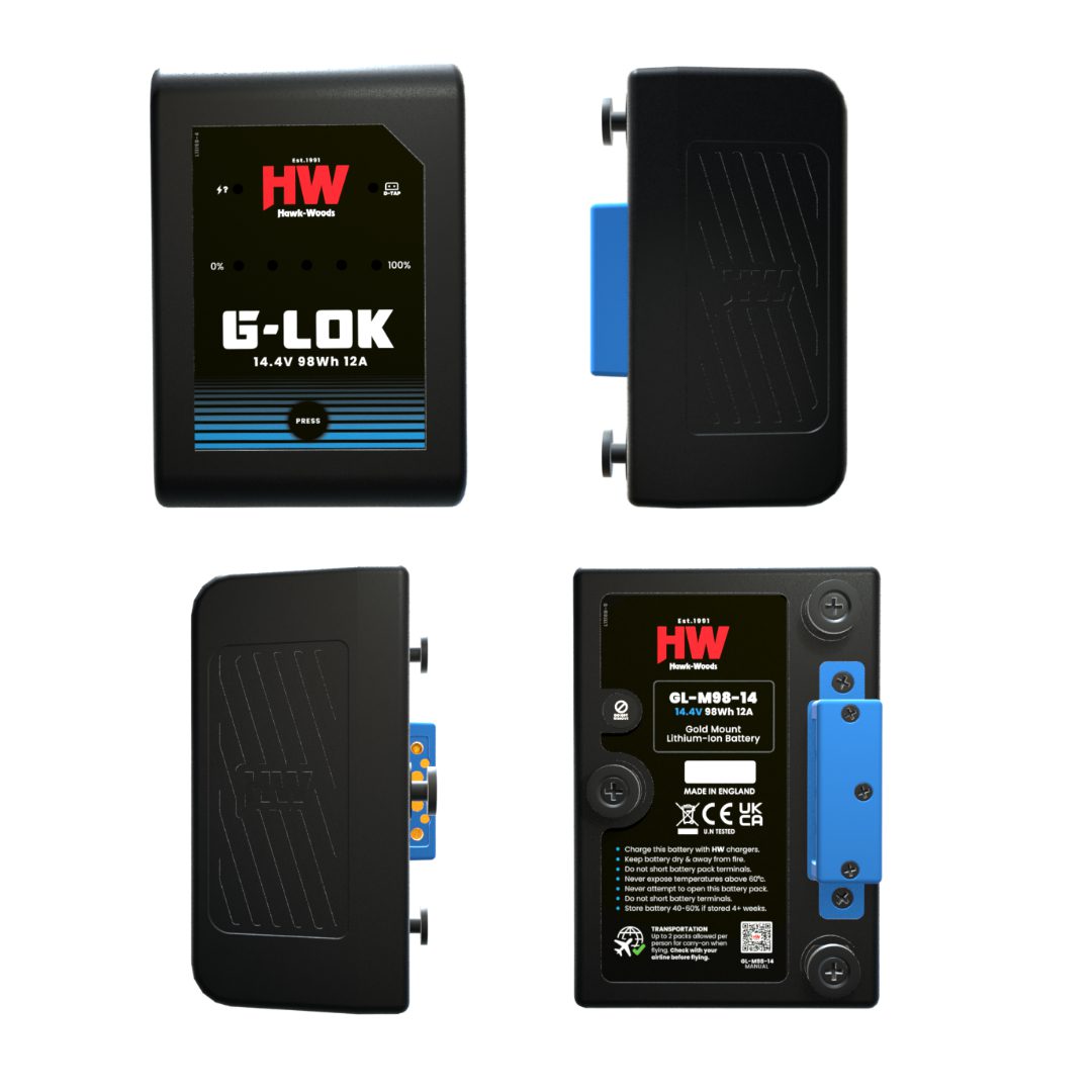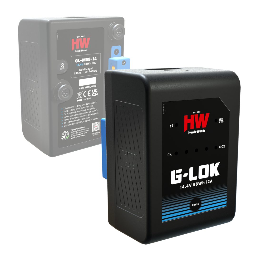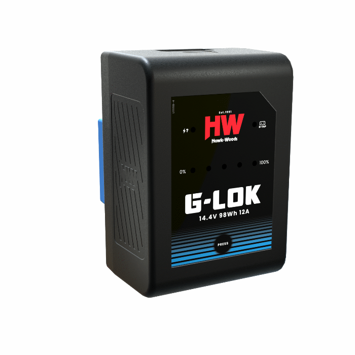Introducing the Hawk-Woods Mini G-Lok 14.4v (Gold Mount) battery designed for modern Broadcast & Cine Applications.